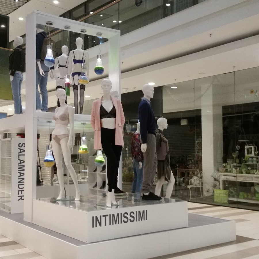 2 Aufbauten Rahmen 183x183 cm übereinander angeordnet mit jeweils 3 Hängelampen